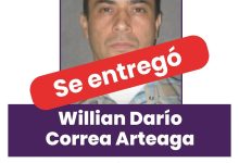En San Vicente Ferrer se entregó en las últimas horas William Darío Correa Arteaga, uno de los 18 más buscados…