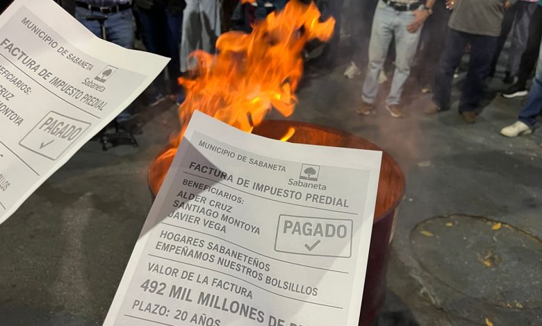 Con velatón y quema de facturas en Sabaneta crece el rechazo ciudadano al alza del impuesto predial