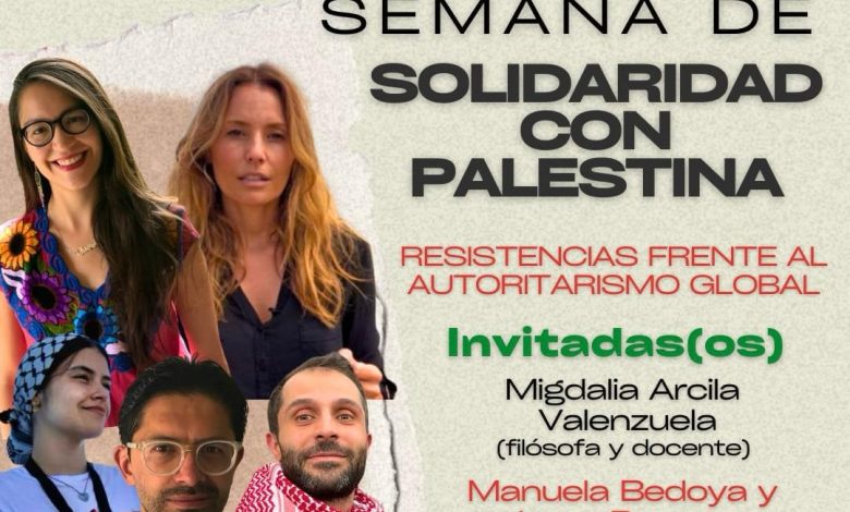 Del 27 de noviembre al 4 de diciembre se realizará en Medellín y Bogotá la Semana de Solidaridad con Palestina denominada “Resistencias frente al Autoritarismo Global”, la programación se cumple en el marco del Día Internacional de Solidaridad con el Pueblo Palestino.
