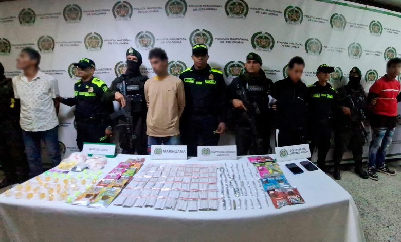 Entre los capturados se encuentra un presunto coordinador conocido con el alias de “Kevin”, así como tres integrantes conocidos como “Veneco”, “Cumba” y “El Nary”, todos con antecedentes judiciales por delitos como acceso carnal abusivo y tráfico de estupefacientes.